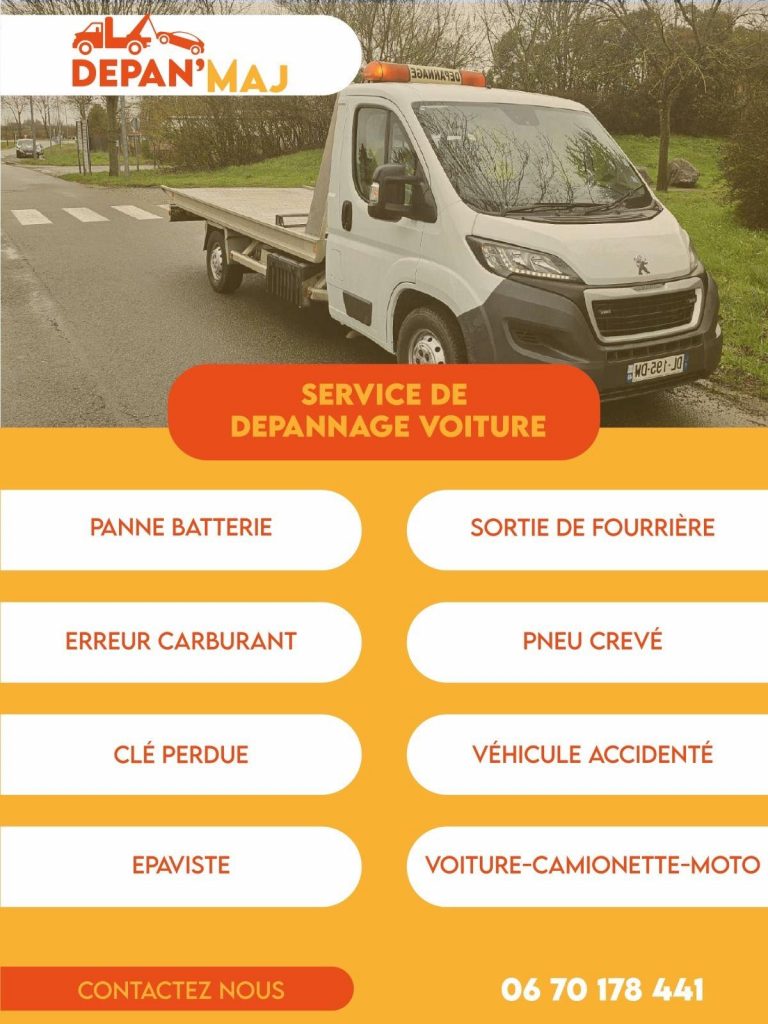 Depan’Maj, dépanneur automobile à Angers, propose un service de dépannage pour tous types de véhicules, particuliers comme professionnels.